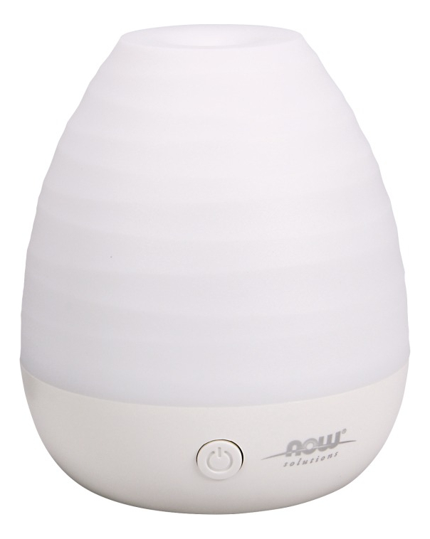 Difusor ultrassônico de óleos essenciais Now Foods. Este dispositivo é extremamente silencioso e fácil de limpar. Ele gera um vapor frio, sem calor, eliminando qualquer risco de queimaduras. Ele se desliga automaticamente e oferece de 4 a 6 horas de uso. Um cabo USB de 40 polegadas está incluído. Possui luzes LED giratórias para um ambiente relaxante.