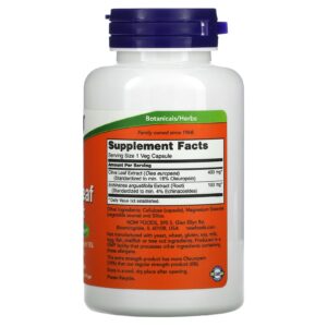 NOW Foods Extrato de Folha de Azeitona 100 Cápsulas Vegetais – Now Foods Suplementos Ervas Folha de Oliva Saúde Gripe e Resfriado.