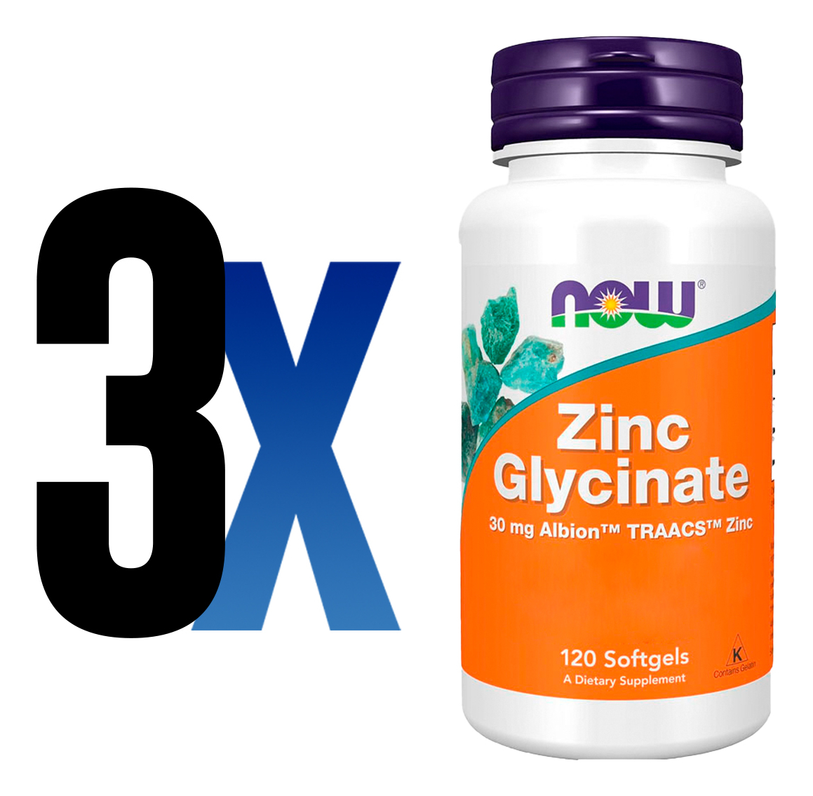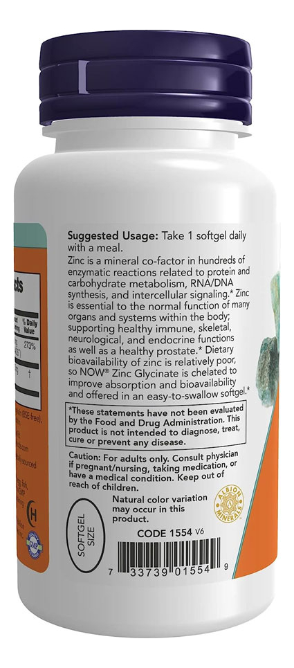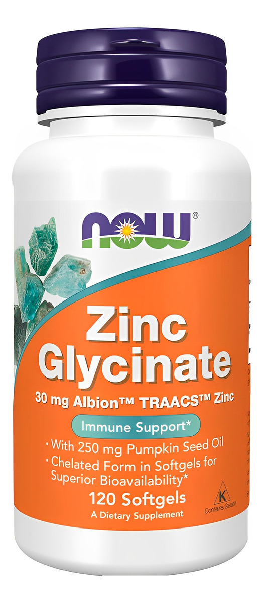Glicinato de Zinco 30mg Now Foods 120 Softgels Produto Importado Original