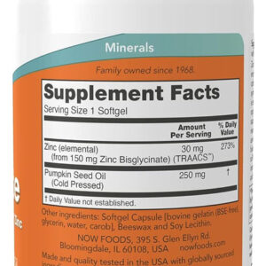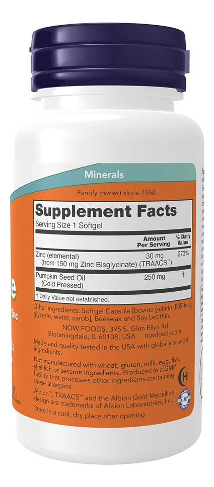 Glicinato de Zinco 30mg Now Foods 120 Softgels Produto Importado Original