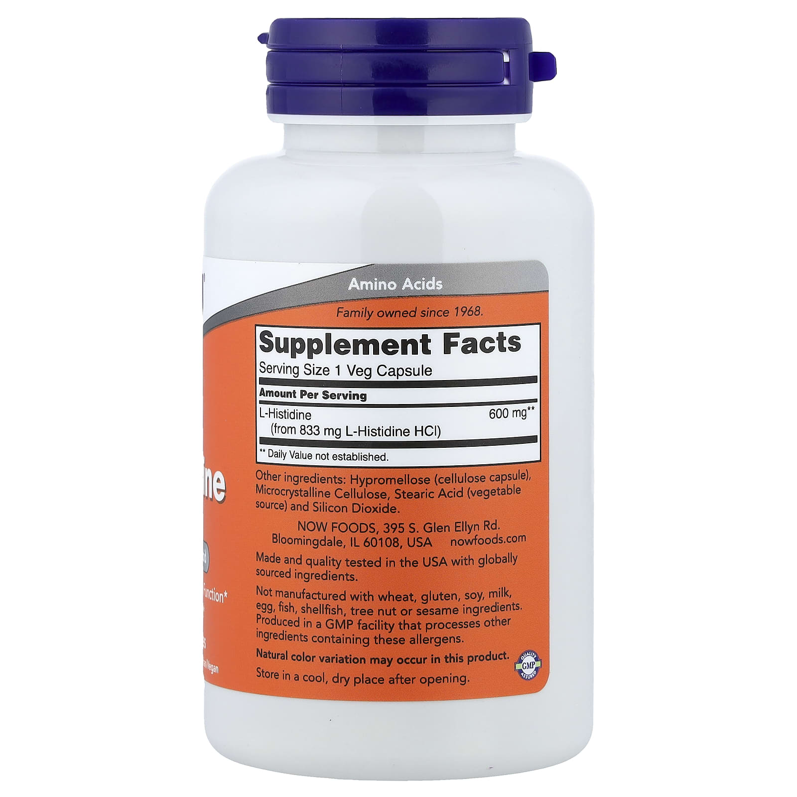 NOW Foods L-Histidina 600 mg 60 Cápsulas Vegetais – Now Foods Suplementos Aminoácidos.