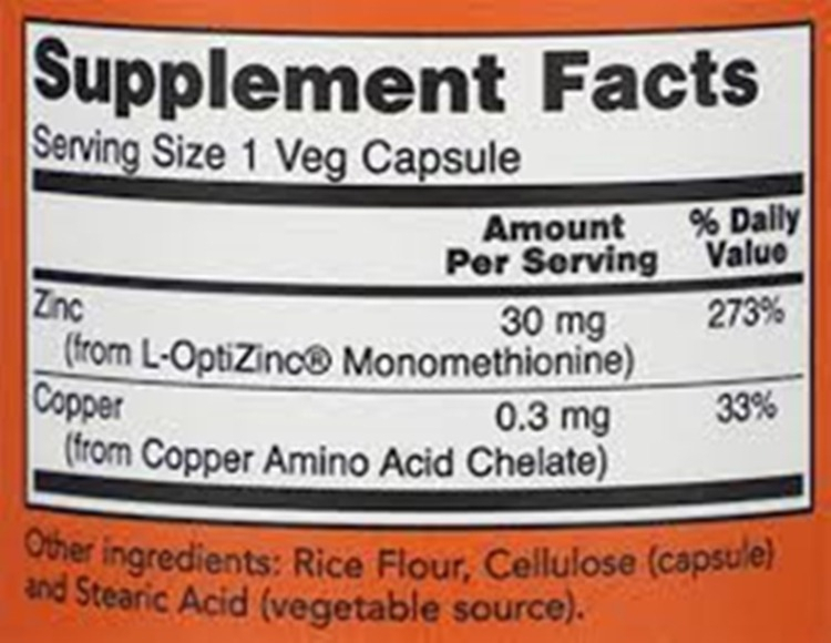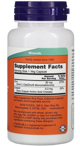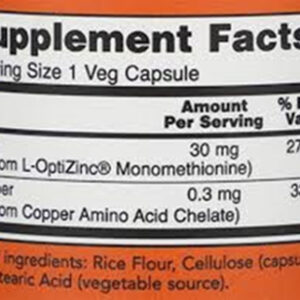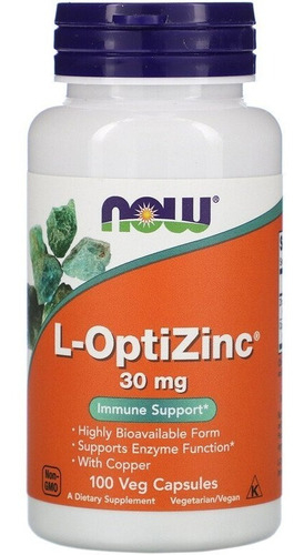 Now Foods L-optizinc (r) 30 Mg + Cobre 100 V Cápsulas Sfn Flavor, Sem Sabor