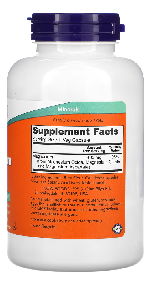 Now Foods Magnésio Magnesium 400mg 180veg Cáps +porta Cáps