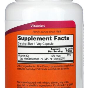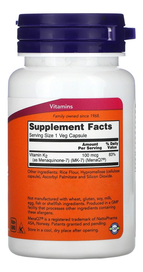 Now Foods Mk-7 Vitamina K-2 100mcg 60caps Veg No Brasil