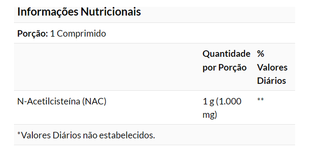 4. Integração Simples na Vida Cotidiana: A NAC em forma de tabletes pode ser facilmente integrada à sua rotina diária. Sua forma prática e dosagem conveniente permitem que você a consuma com facilidade, sem alterações significativas em seu estilo de vida.
