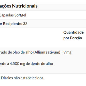 1. Foco em Nutrição Especializada: O Óleo de Alho da , com 1500mg por softgel, oferece um foco nutricional especializado. Este produto é uma escolha ideal para quem busca um complemento à base de óleo de alho em sua dieta diária.