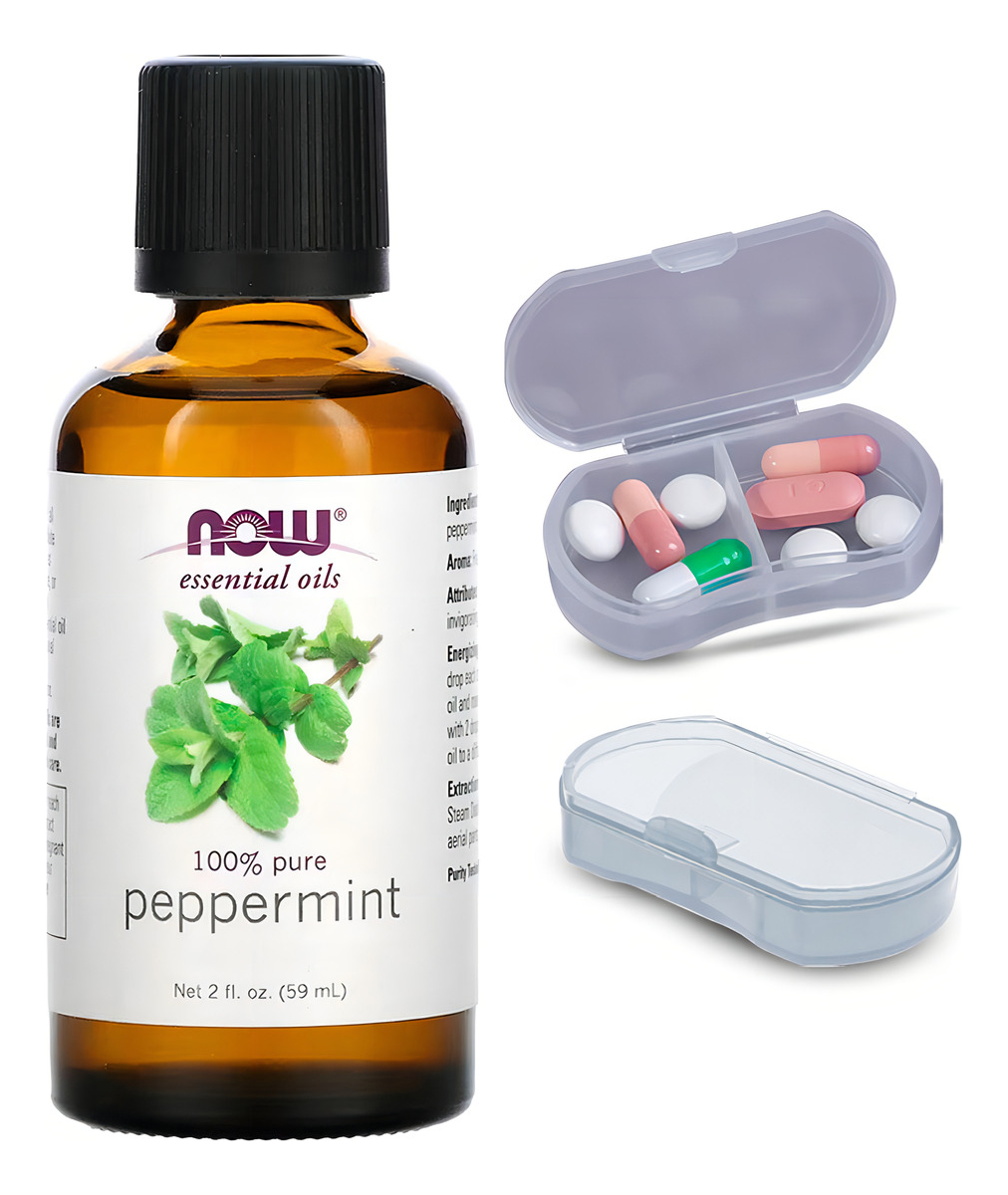 Kit Óleo de Menta Now Foods 59ml 100% Puro + Porta Cápsulas
