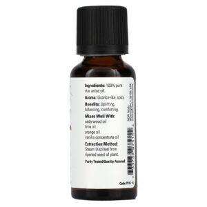 NOW Foods Óleos Essenciais Anis Estrelado 30 ml (1 fl oz) – Now Foods Cuidados Pessoais Óleos Essenciais e Aromaterapia Óleos Essenciais Individuais.
