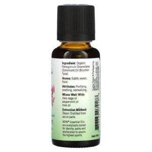 NOW Foods Óleos Essenciais Orgânicos Gerânio 30 ml (1 fl oz)