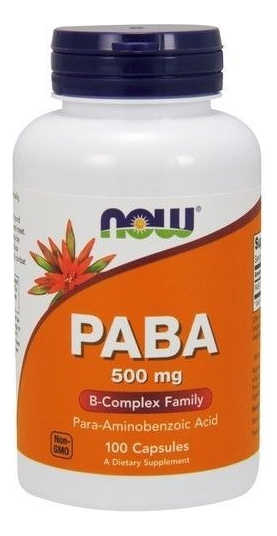 O PABA (Ácido Para-aminobenzoico) é encontrado em alimentos como grãos, ovos, leite e carne. É um precursor do ácido fólico e pode ser utilizado pela nossa microbiota intestinal para produzir ácido fólico. O PABA também pode auxiliar as células no combate ao estresse oxidativo.