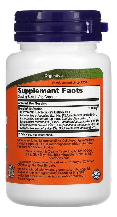 Probiotic-10 da NOW é um suplemento avançado projetado para apoiar a saúde digestiva e a função imunológica. Com 25 bilhões de organismos vivos por cápsula, este produto é formulado com cepas probióticas resistentes a ácidos que colonizam naturalmente o trato gastrointestinal. Sem lactose, sem glúten e adequado para veganos, é ideal para aqueles que seguem dietas restritivas. A embalagem contém 50 cápsulas, garantindo um bom suprimento para manter sua rotina de suplementação. Probiotic-10 é livre de sabores, o que o torna uma escolha perfeita para quem prefere suplementos sem aditivos artificiais. Com uma dose recomendada de 1 cápsula por dia, este suplemento é adequado para adultos a partir de 18 anos, oferecendo um suporte nutricional e esportivo de alta qualidade.