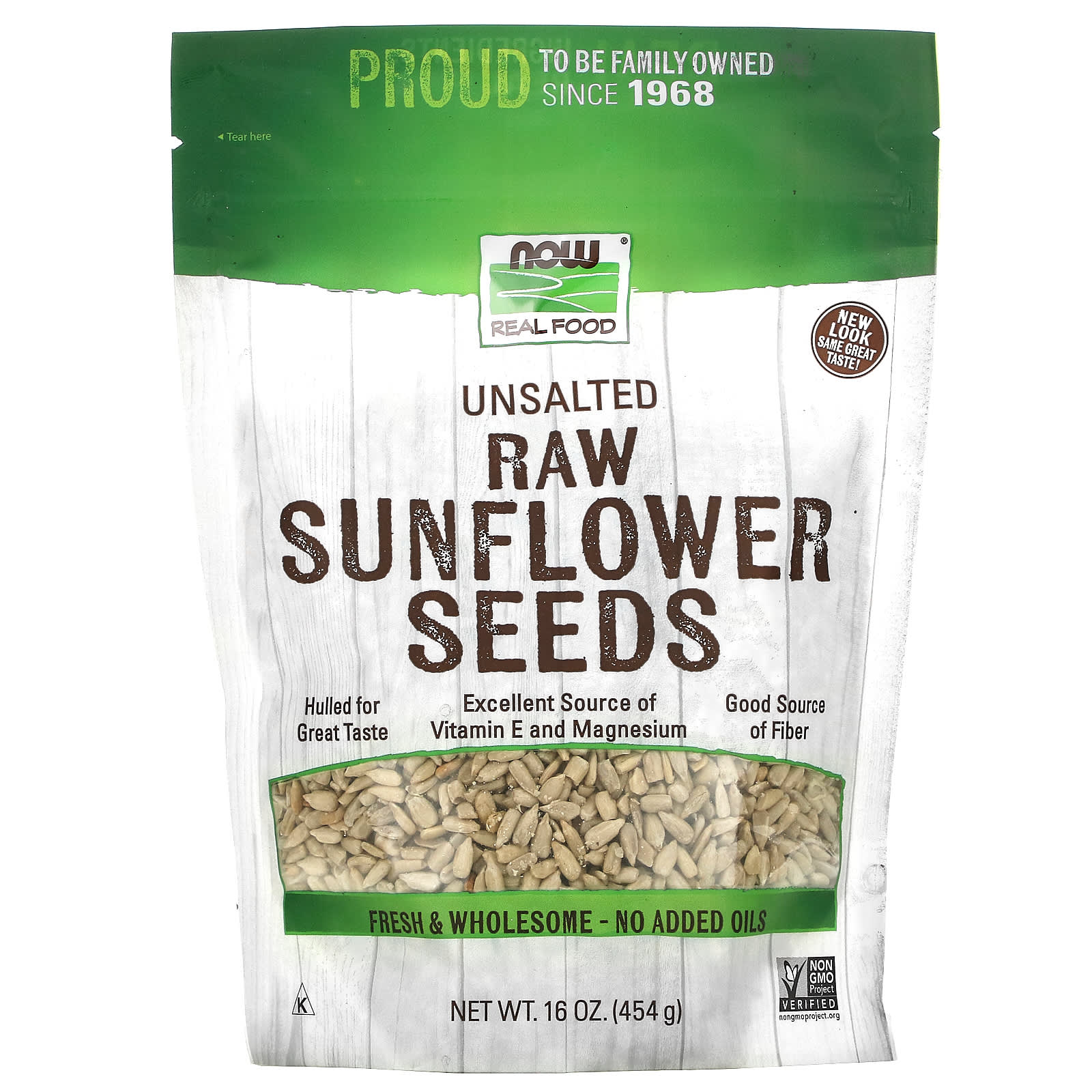 NOW Foods Real Food sementes cruas de girassol sem sal 16 oz (454 g)