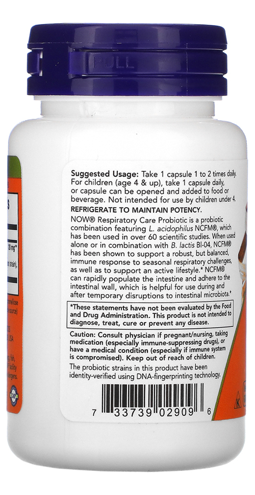 Respiratory Care Probiótico Now Foods 60 Cápsulas Vegetarianas – Importado