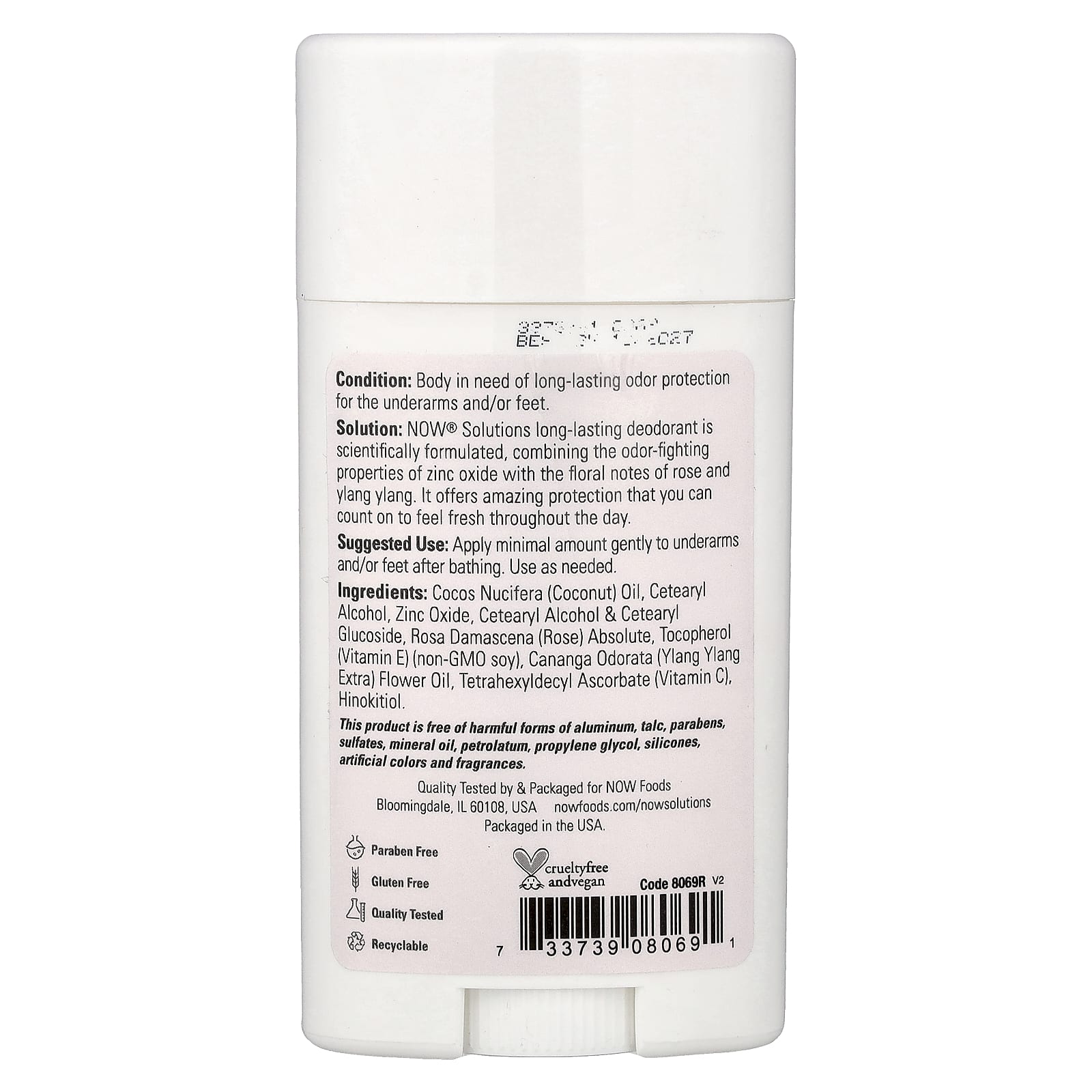 NOW Foods Solutions Desodorante de Longa Duração Rosa + Ylang-Ylang 62 g (22 oz) – Now Foods Cuidados Pessoais Cuidados Íntimos Desodorante.