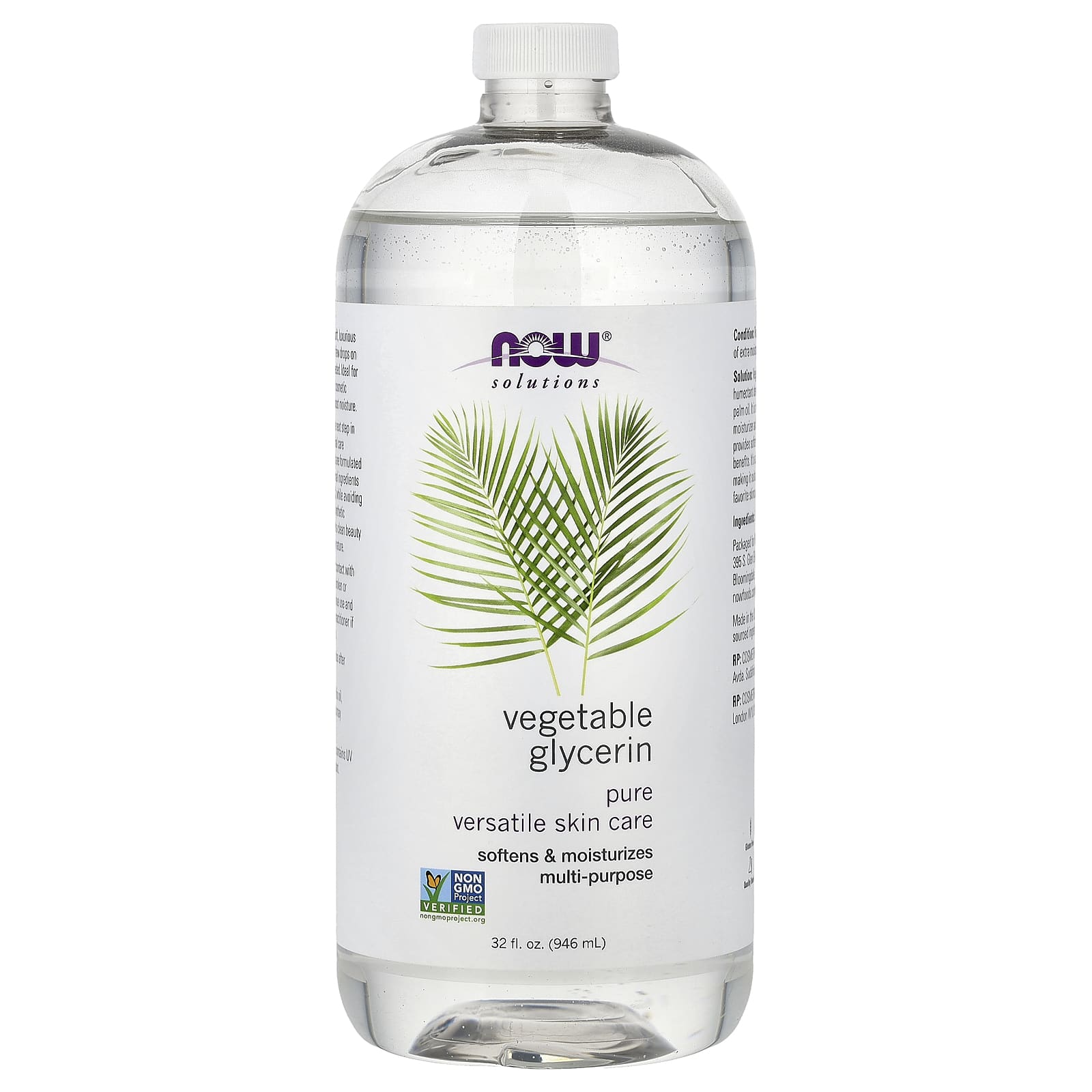 NOW Foods Solutions Glicerina Vegetal 946 ml (32 fl oz) – Now Foods Cuidados Pessoais Cuidados com o Corpo Óleos corporais e de massagem.