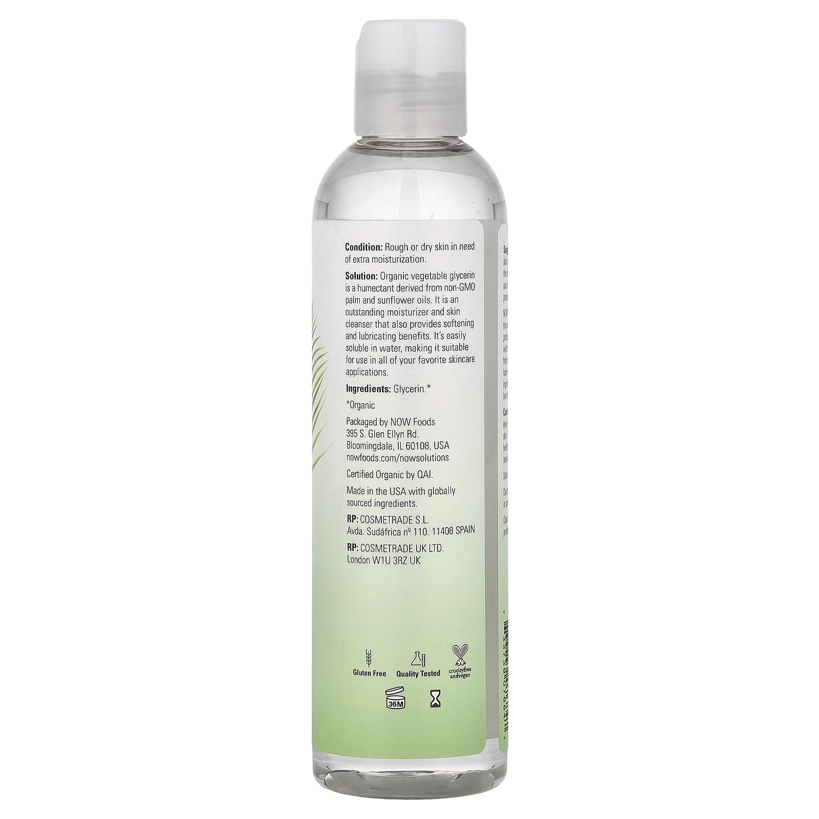 NOW Foods Solutions Glicerina Vegetal Orgânica 8 fl oz (237 ml) – Now Foods Cuidados Pessoais Cuidados com o Corpo Óleos corporais e de massagem.