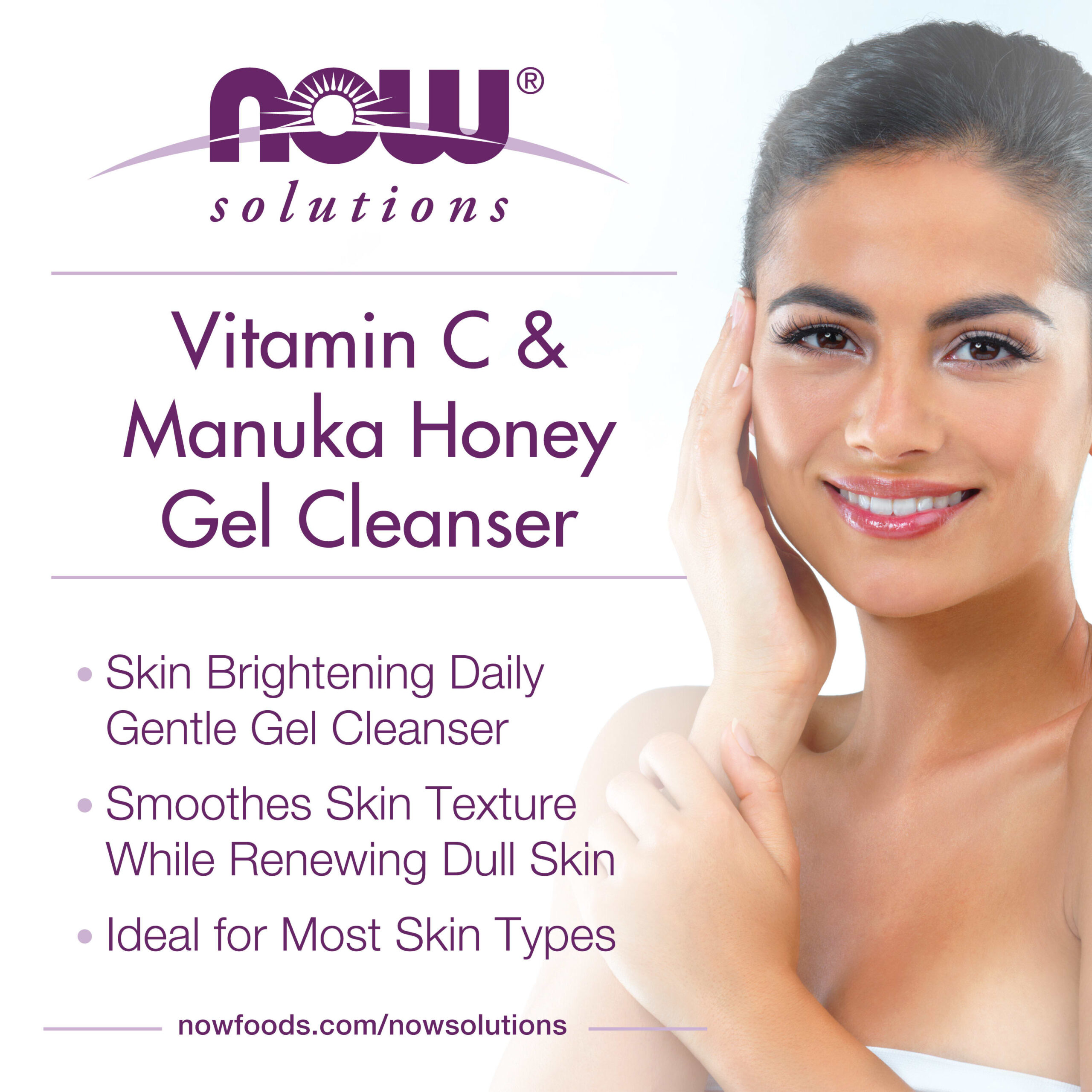 NOW Foods Solutions Limpador gel Vitamina C e Mel Manuka 8 fl oz (237 ml) – Now Foods Beleza Limpeza Facial Sabonetes Faciais Beleza por Ingrediente Cuidados com a Pele com Mel.
