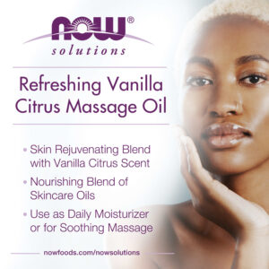 NOW Foods Solutions Óleo Refrescante para Massagem Baunilha e Cítricos 237 ml (8 fl oz) – Now Foods Cuidados Pessoais Cuidados com o Corpo Óleos corporais e de massagem Misturas de óleos corporais e de massagem.