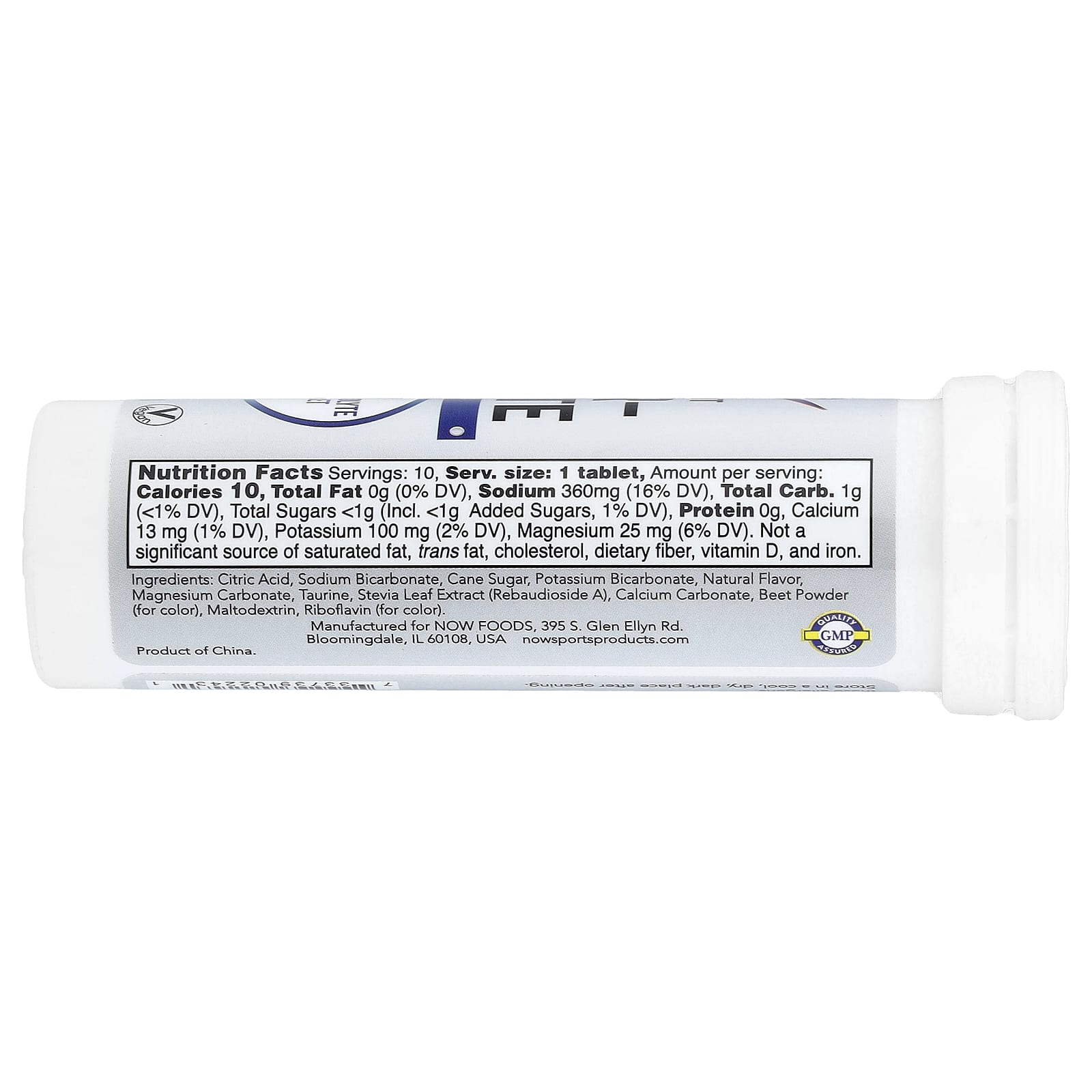 Ácido cítrico, bicarbonato de sódio, açúcar de cana, bicarbonato de potássio, sabor natural, carbonato de magnésio, taurina, extrato da folha de estévia (rebaudioside A), carbonato de cálcio, beterraba em pó (corante), Maltodextrina, riboflavina (corante).