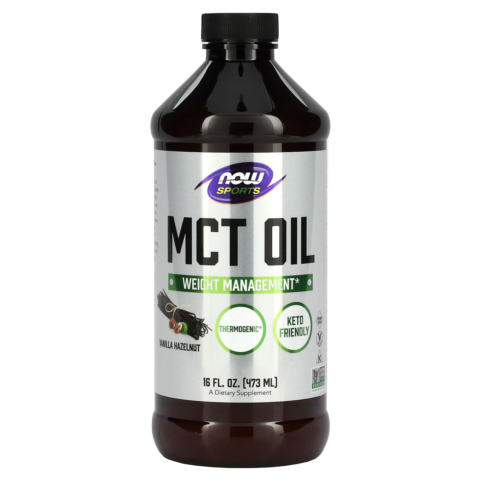 NOW Foods Sports Óleo TCM Baunilha e Avelã 14 g 473 ml (16 fl oz) – Now Foods Suplementos Controle de peso Óleo de TCM e Ácido Caprílico.