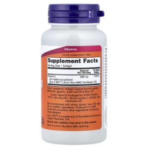 A ® Sun-E™ 400 da NOW® é uma vitamina E sem soja, derivada do óleo da semente de girassol não OGM e com Identidade Preservada (IP). A vitamina E é um importante antioxidante solúvel em gordura, particularmente importante para manter a saúde celular. Ela neutraliza os radicais livres formados pelos processos metabólicos normais e pelas exposições ambientais. Além das atividades antioxidantes, a vitamina E também é fundamental para o funcionamento normal do sistema imunológico e para a manutenção de um sistema vascular saudável.