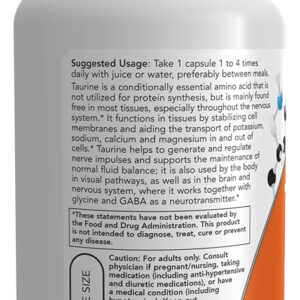 Suplemento de Taurina de Alta Qualidade: Now Foods Taurina 500mg é um suplemento de alta qualidade que foi desenvolvido para apoiar o seu bem-estar. Ele contém 500mg de taurina por cápsula, uma quantidade ideal para suprir suas necessidades diárias;