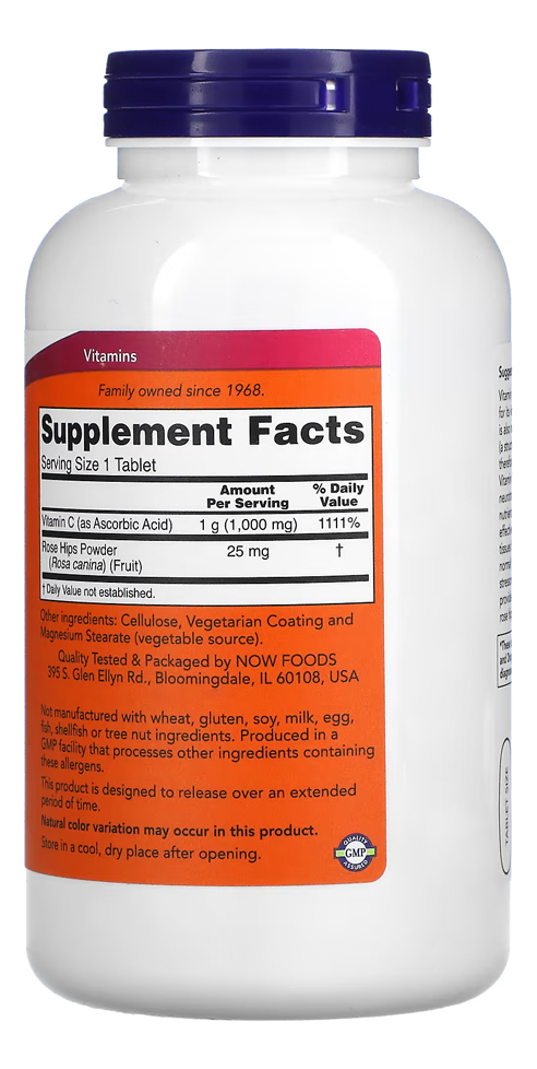 Vitamina C 1000mg e Rosa Mosqueta Now Foods 250tab Produto Importado Original