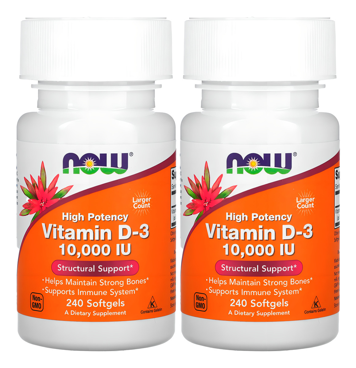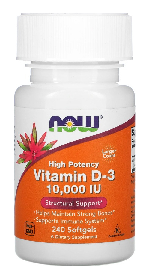 Now Foods Vitamina D3 250mcg Alta potência 240 Softgels Suporte ao Fortalecimento Ósseo Absorção de Cálcio / No Brasil A vitamina D é normalmente obtida a partir de dieta alimentar ou produzida pela pele a partir da energia ultravioleta do sol. No entanto, nem sempre os níveis são abundantes em alimentos. Disponível em cápsula de softgels de 250mcg que podem ser facilmente ingeridas, a vitamina D3 pode ser utilizada para complementar sua dieta alimentar com as quantidades necessárias desta substância tão importante ao fortalecimento ósseo, defesas do organismo ou mesmo a absorção de cálcio, dentre outros beneficioas. Outros Ingredientes: Azeite Virgem Extra Orgânico e Cápsula Softgel [gelatina bovina (sem BSE), glicerina, água]. Recomendação de uso: Tome 1 cápsula de gel a cada 3 dias com uma refeição que contenha gordura ou conforme orientação. Cuidados: Apenas para adultos. Evite exceder a dose recomendada. Mantenha fora do alcance de crianças. Pode ocorrer variação natural da cor neste produto. Guarde em local fresco e seco após a abertura Dimensões:9,0 x 4,0 x 4,0 cm Peso: 0,084 Itens Inclusos: 1x frasco com 240 softgels Validade: 04/2024'.