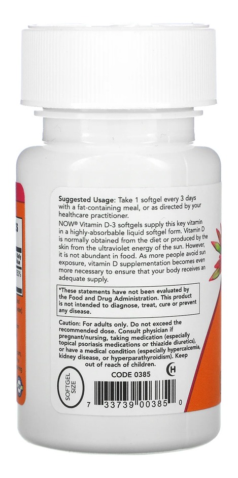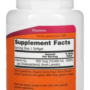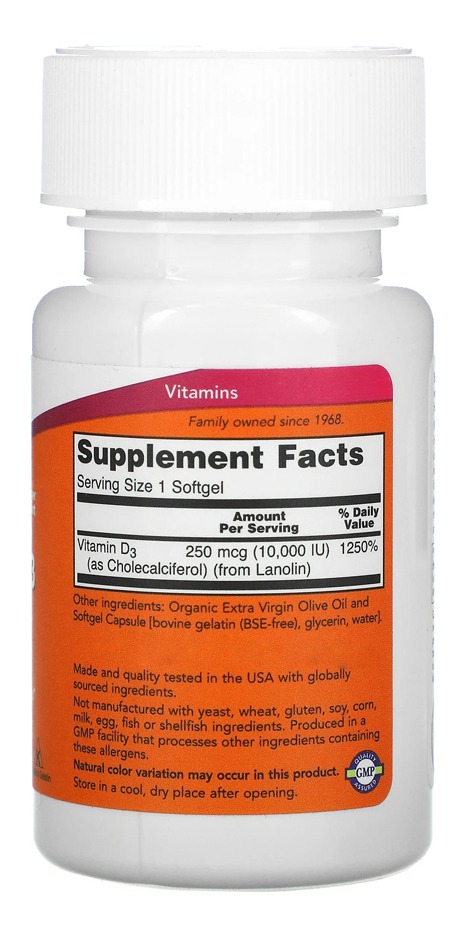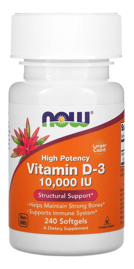 Now Foods Vitamina D3 250mcg Alta Potência 240 Softgels