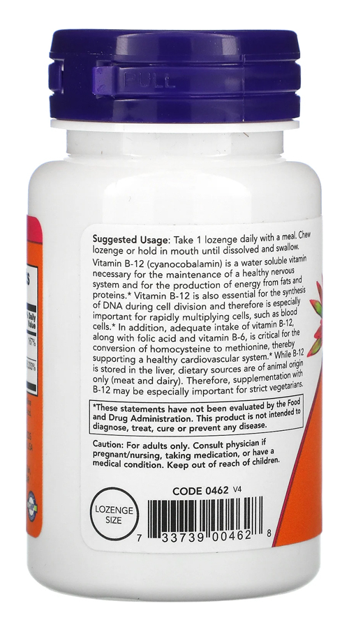 Now Foods Vitamina B12 5000mcg e Ácido Fólico 60 Pastilhas Suporte a Produção de Energia no Metabolismo / No Brasil-TOPSHOP A Vitamina B12 e o Ácido Fólico são compostos importantes para o bom funcionamento de nosso corpo e com essa fórmula combinada da Now Foods você pode contar com os benefícios da vitamina B12, um composto solúvel importante para a produção de energia a partir de gorduras e proteínas e do Ácido Fólico uma substância que desempenha um papel importante na conversão de homocisteína em metionina e no apoio ao melhor desempenho das articulações cardiovasculares. Sem mencionar que a vitamina B12 também é essencial para a síntese de DNA durante a divisão celular. OUTROS INGREDIENTES: Frutose, Sorbitol, Celulose microcristalina, Ácido Esteárico (fonte vegetal), Ácido cítrico, Aromas naturais, Dióxido de Silício e Lecitina de Soja. RECOMENDAÇÕES DE USO: Tomar 1 pastilha por dia com uma refeição. Mastigue a pastilha ou segure na boca até dissolver. CUIDADOS: Apenas para adultos. Se estiver grávida ou amamentando, busque orientação antes de usar este produto. Mantenha fora do alcance de crianças. Pode ocorrer variação natural da cor neste produto. Dimensões: 9,0 x 4.0 x 4.0 cm Peso: 0,044 Itens inclusos: 1x Frasco com 60 Pastilhas VALIDADE LONGA.