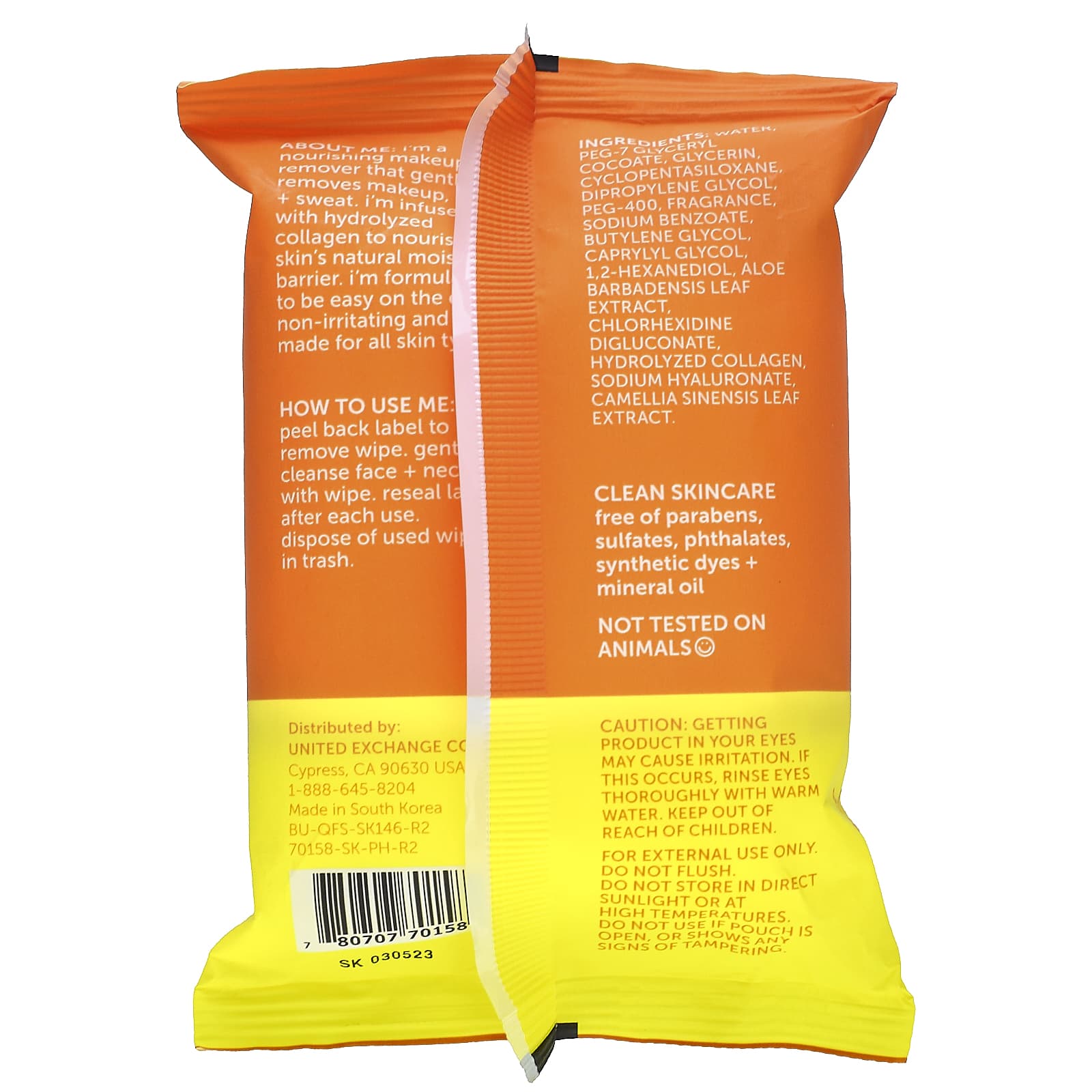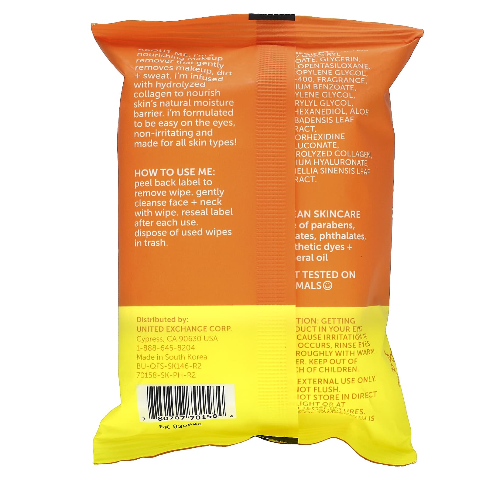 Sobre mim: Sou um removedor de maquiagem nutritivo que remove suavemente a maquiagem, a sujeira e o suor. sou infundido com colágeno hidrolisado para nutrir a barreira de hidratação natural da pele. Foram formulados para ser suaves, não irritantes e feitos para todos os tipos de pele!