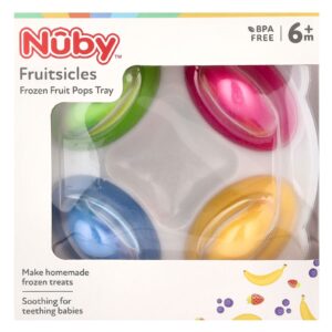 As novas Fruitsicles™ Garden Fresh™ da Nûby’s™ são ótimas para fazer picolés de purê frescos em casa. O design inteligente se encaixa perfeitamente nas mãos pequenas do bebê e retém qualquer gota enquanto derrete. Saborosos, frescos e saudáveis, os Fruitsicles™ também agem como um ótimo mastigador para acalmar gengivas doloridas. Instruções incluídas