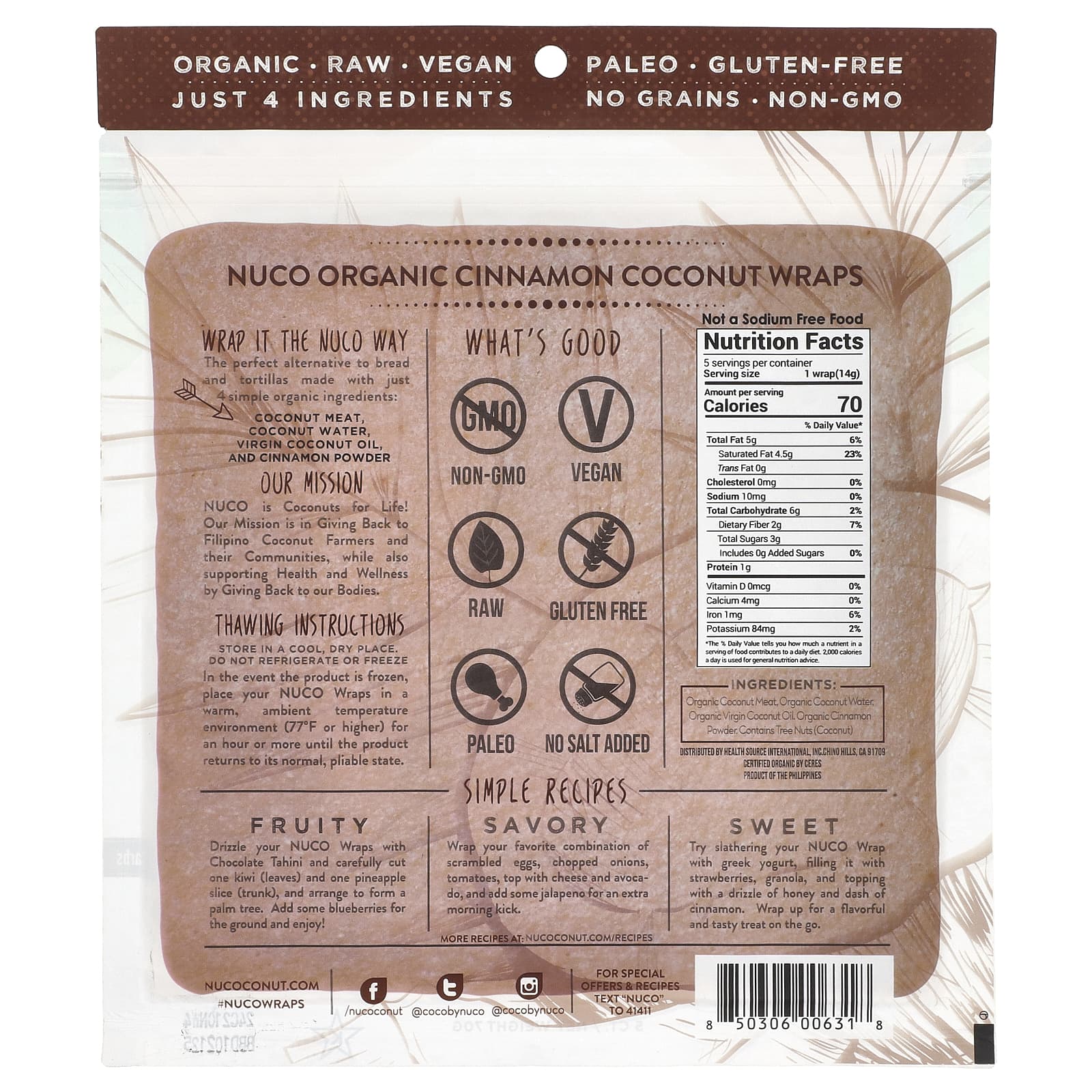 NUCO Wraps de Coco Orgânico Canela 5 Wraps (14 g) Cada – NUCO Alimentos Alimentos embalados e prontos Pães e Wraps.