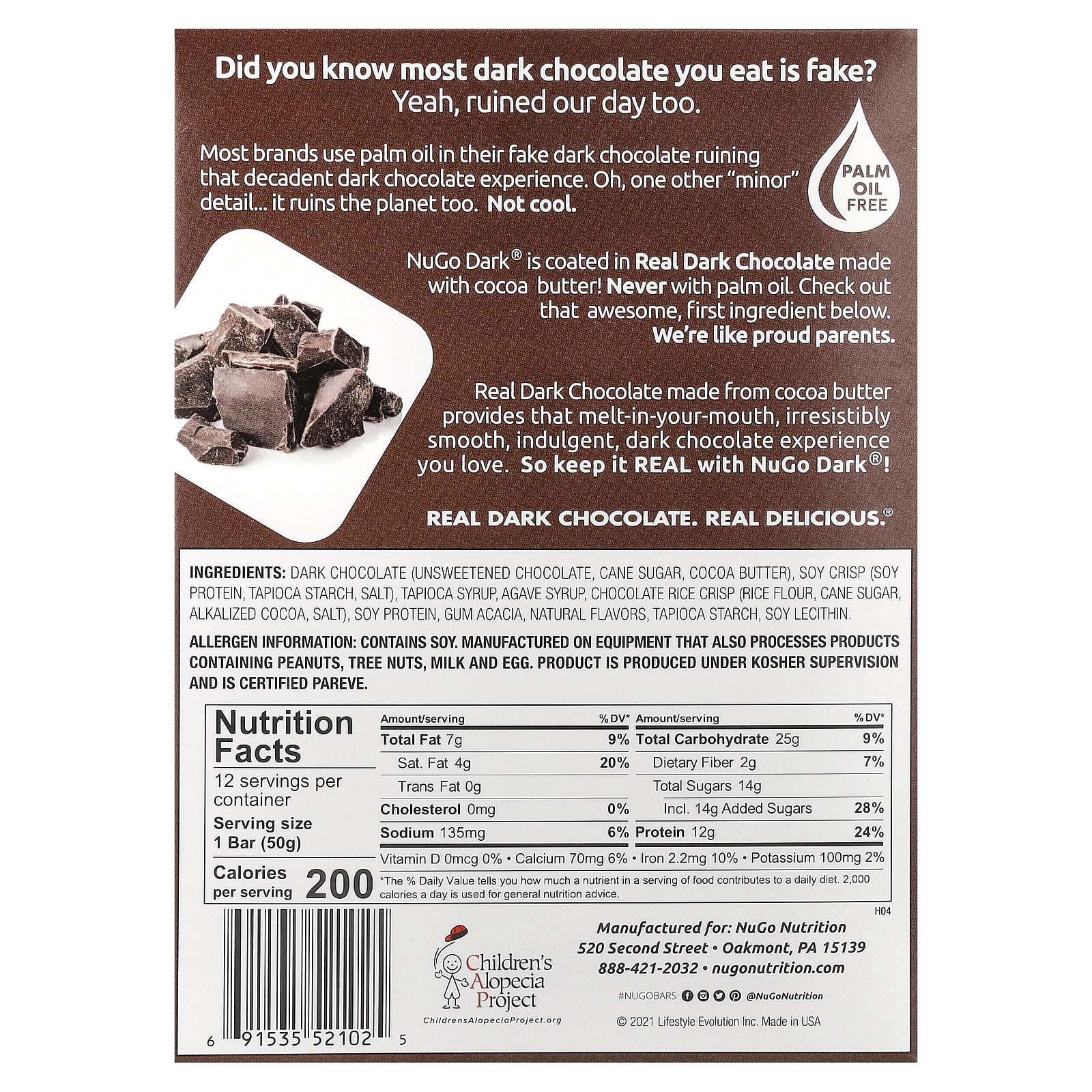 O NuGo Dark® é coberto com Chocolate Amargo de Verdade feito com manteiga de cacau! Nunca com óleo de palma. Confira esse primeiro ingrediente incrível abaixo. Somos como pais orgulhosos.