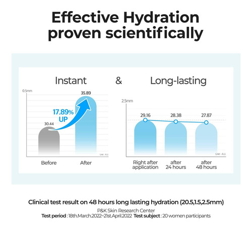 Testado clinicamente testado para hidratar a pele até 2,5 mm de profundidade.