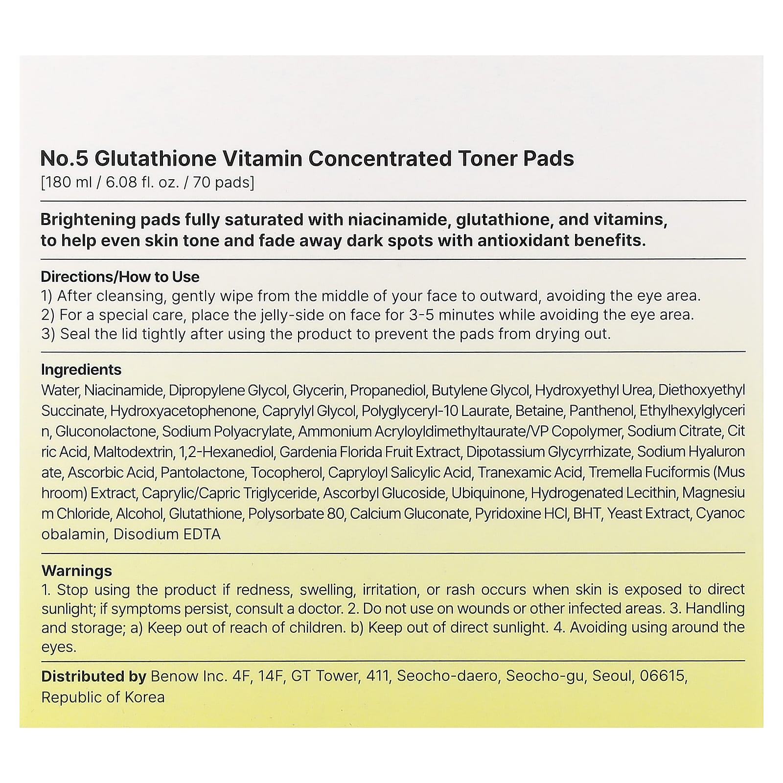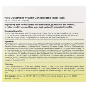 Numbuzin Discos Tônicos Concentrados com Vitamina Glutationa N.º 5 70 Discos 180 ml (608 fl oz) – Numbuzin Beleza Tratamentos e Séruns Séruns Faciais Séruns Iluminadores Séruns iluminadores K-Beauty.