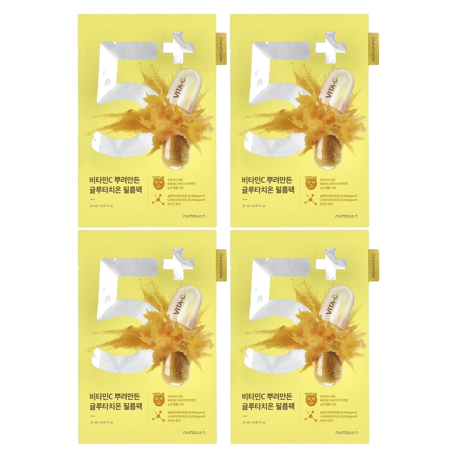 Numbuzin Máscara Facial de Beleza Facial de Vitamina N.º 5 4 Folhas 27 ml (091 fl oz) Cada – Numbuzin Beleza Máscaras Faciais de Beleza Máscaras Faciais Máscaras em folha K-Beauty.
