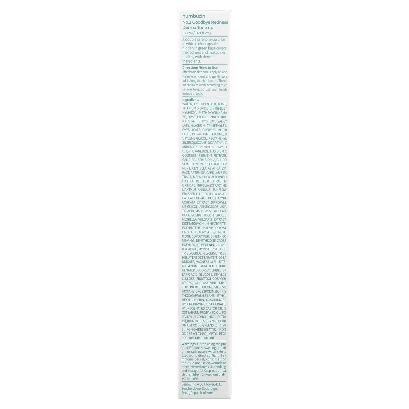 Numbuzin N.º 2 Goodbye Redness Derma Tone Up FPS 50+ PA+++ 50 ml (169 oz) – Numbuzin Beleza Hidratantes Faciais e Cremes Hidratantes e Cremes K-Beauty.