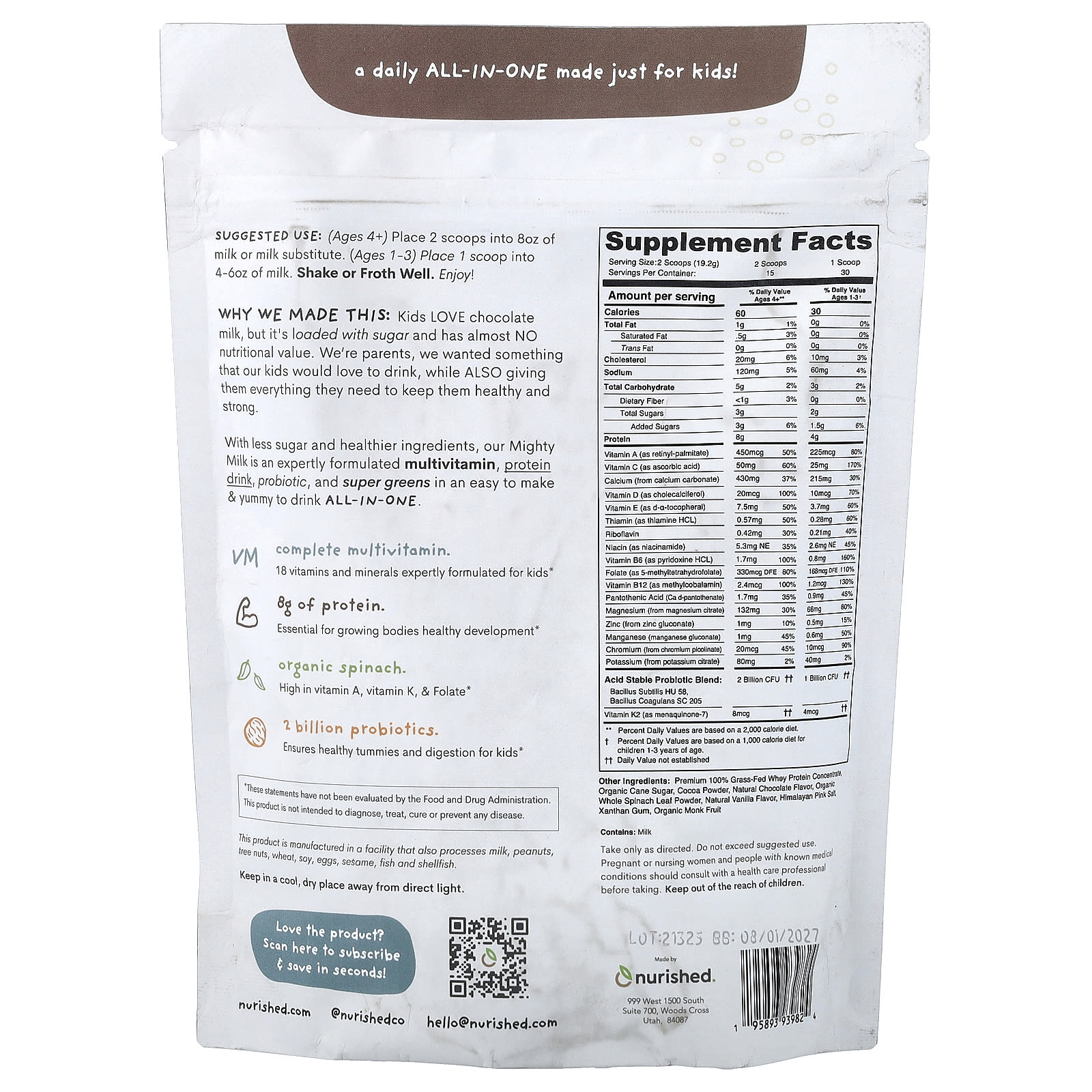 Nurished Kids Mighty Milk Chocolate 288 g (102 oz) – Nurished Bebês e Crianças Saúde Infantil Auxílio digestivo para crianças Vitaminas para Crianças Multivitamínicos Infantis.
