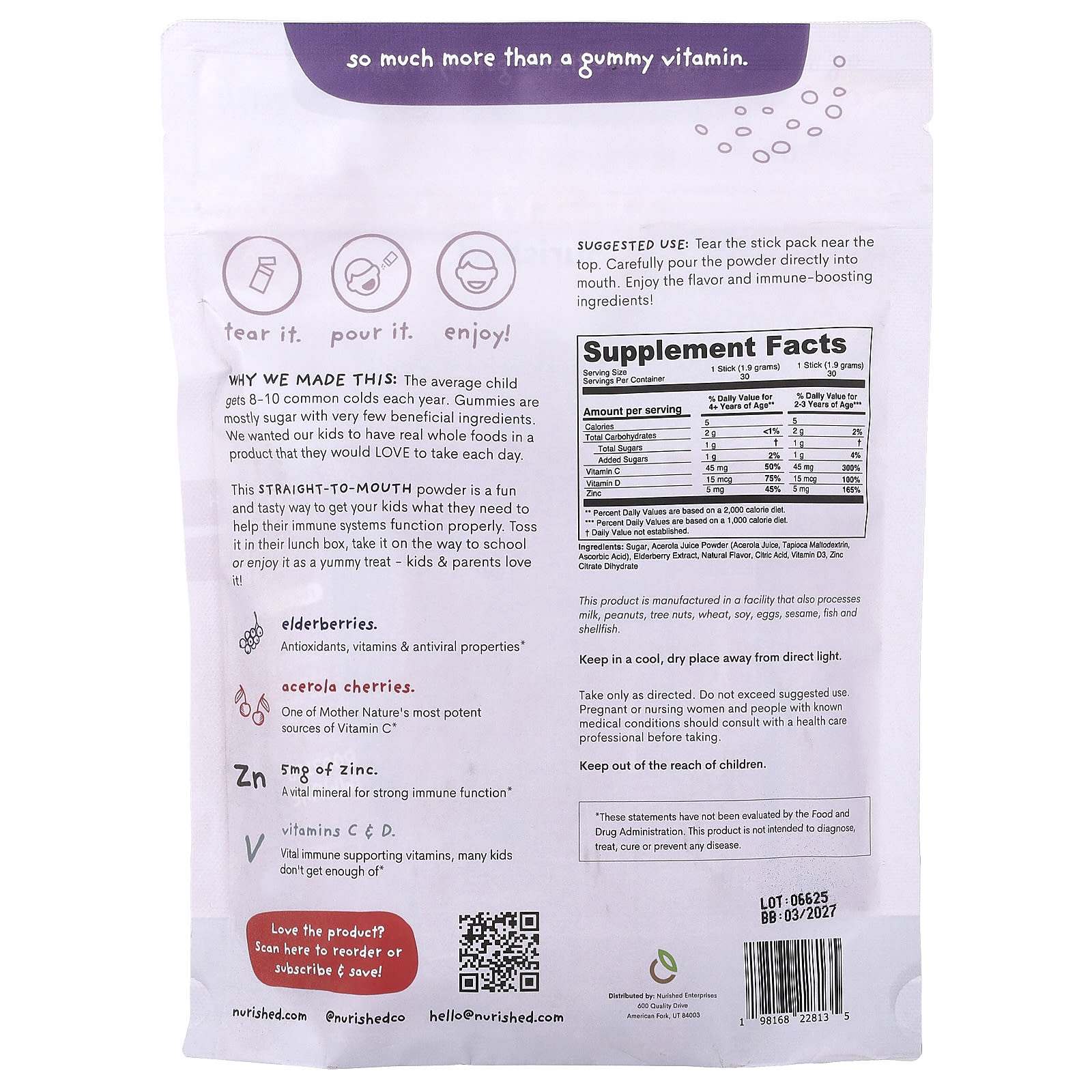 Por que Fizemos Isso: Uma criança comum fica com 8 a 10 resfriados comuns por ano. As gomas são feitas principalmente de açúcar com pouquíssimos ingredientes benéficos. Queríamos que nossos filhos tenham alimentos integrais de verdade em um produto que eles Adorarão Tomar todos os dias.
