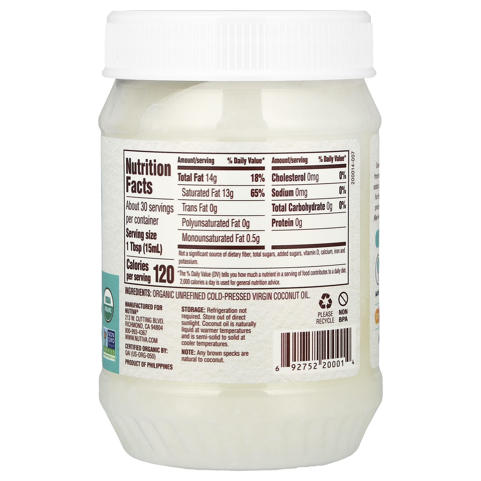 Nutiva Óleo de Coco Virgem Orgânico 444 ml (15 fl oz) – Nutiva Alimentos Óleos e vinagres Óleo de Coco.