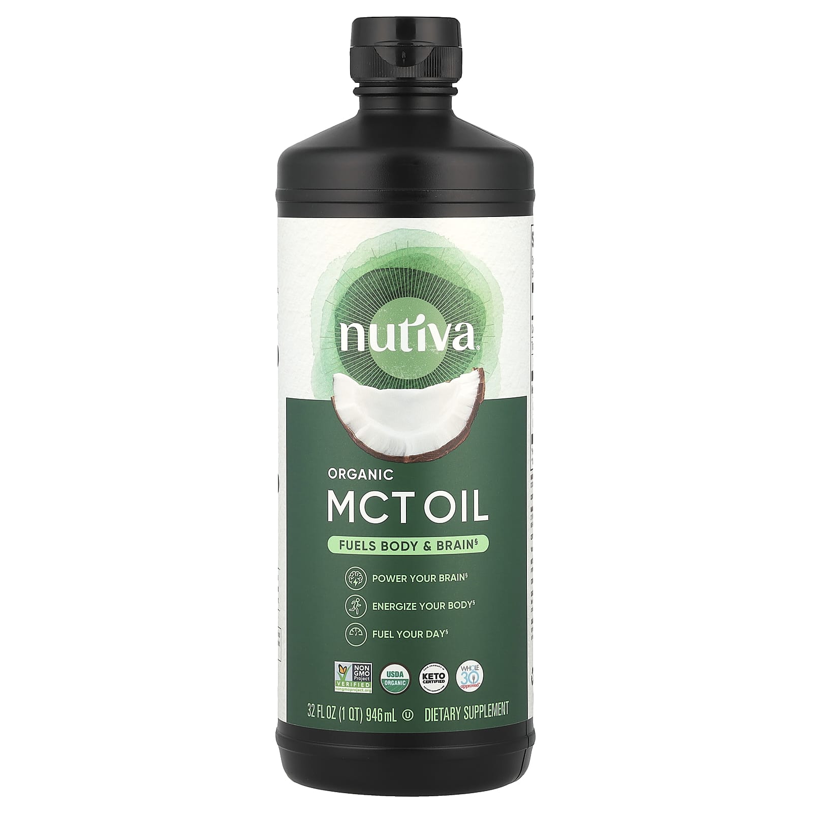 Nutiva Óleo TCM Orgânico 946 ml (32 fl oz) – Nutiva Suplementos Controle de peso Óleo de TCM e Ácido Caprílico.