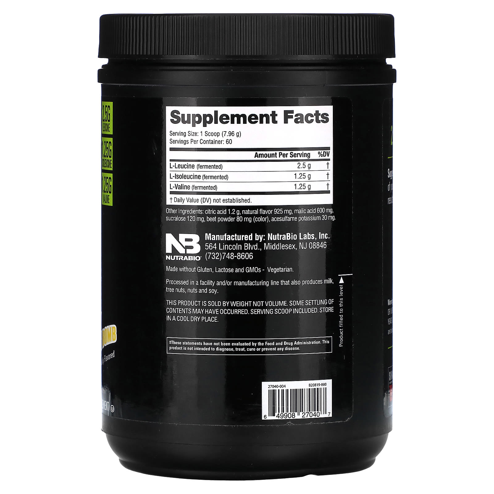 NutraBio BCAA 5000 Bomba de Morango e Limão 477 g (105 lb) – Nutrabio Labs Suplementos Aminoácidos BCAA.