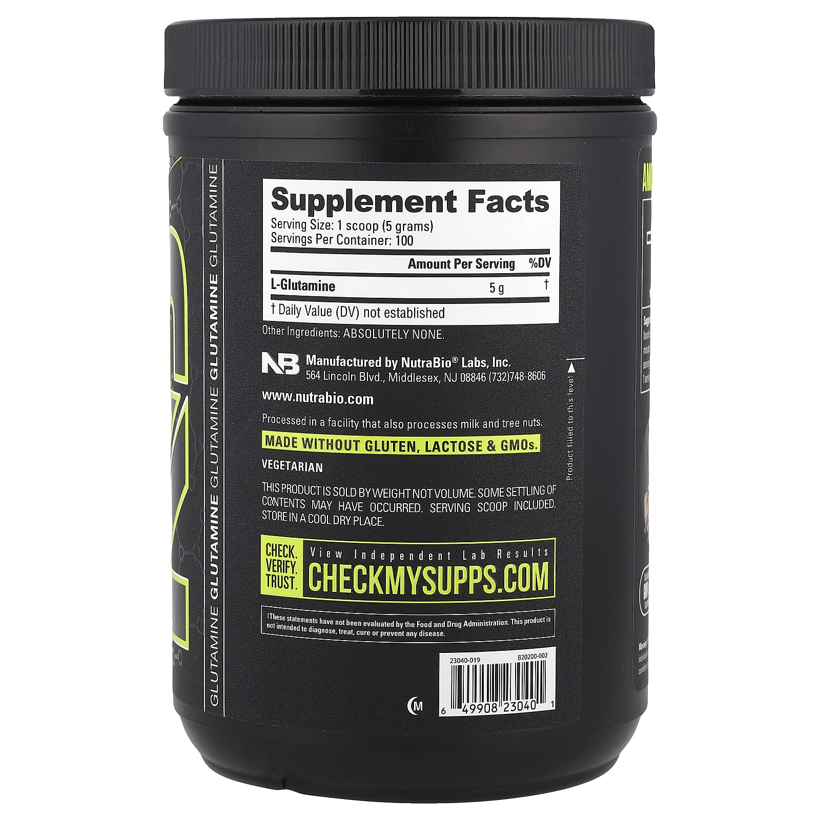 NutraBio Glutamina 500 g (11 lb) – Nutrabio Labs Suplementos Aminoácidos L-Glutamina.