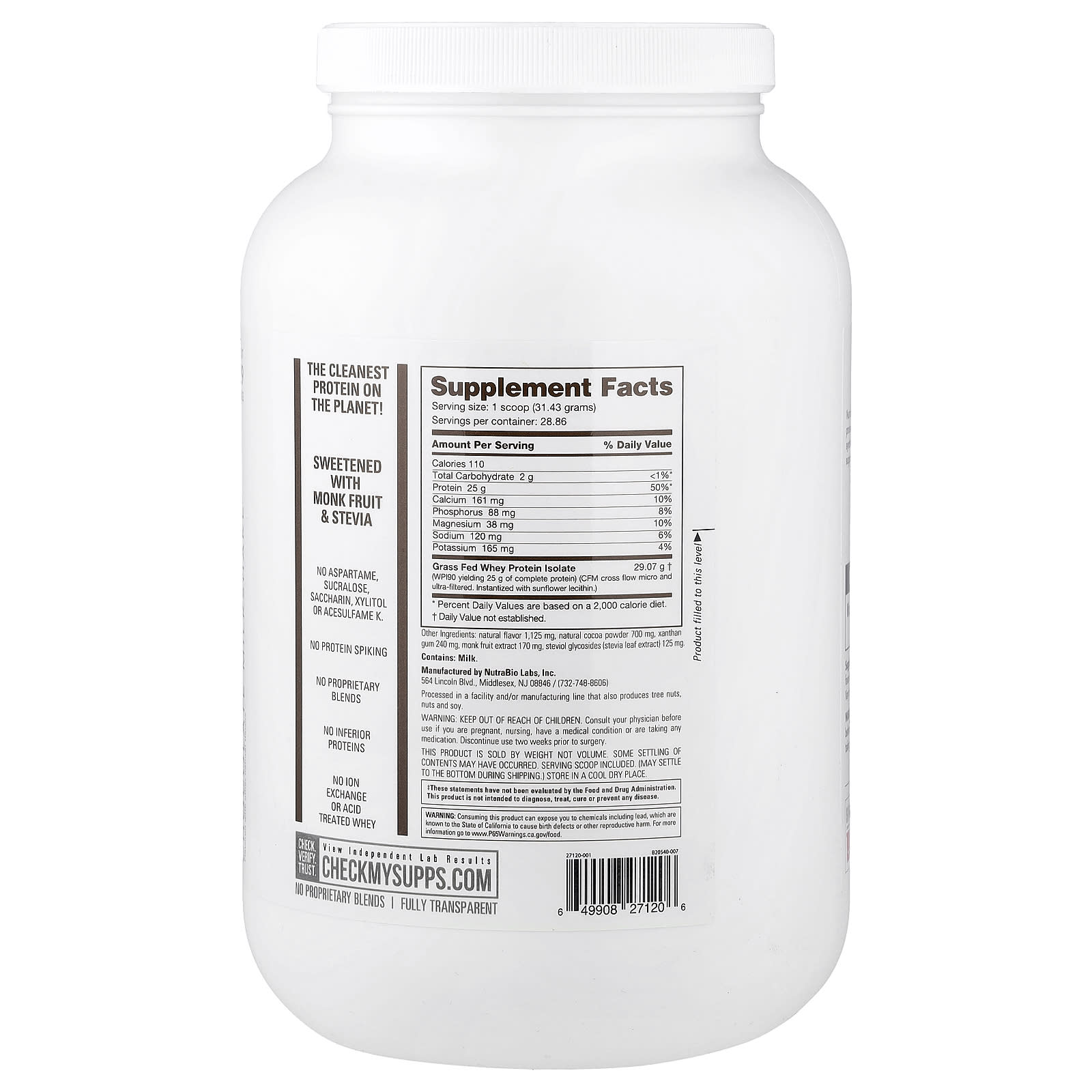 NutraBio Isolado de Proteína Whey Alimentada com Grama Milkshake de Chocolate 907 g (2 lb) – Nutrabio Labs Nutrição Esportiva Proteína Proteína Whey Isolado protéico de soro de leite.