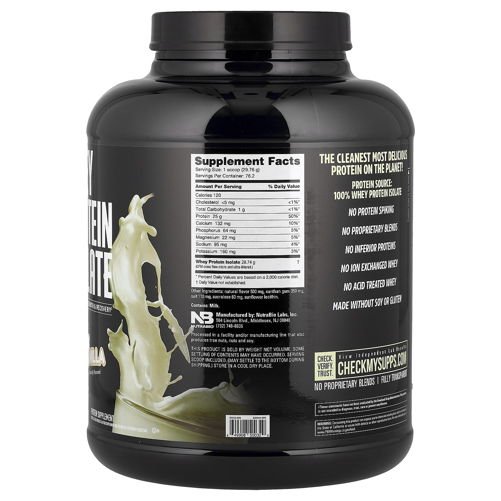 NutraBio Isolado de Proteína Whey Baunilha dos Alpes 2.268 g (5 lb) – Nutrabio Labs Nutrição Esportiva Proteína Proteína Whey Isolado protéico de soro de leite.