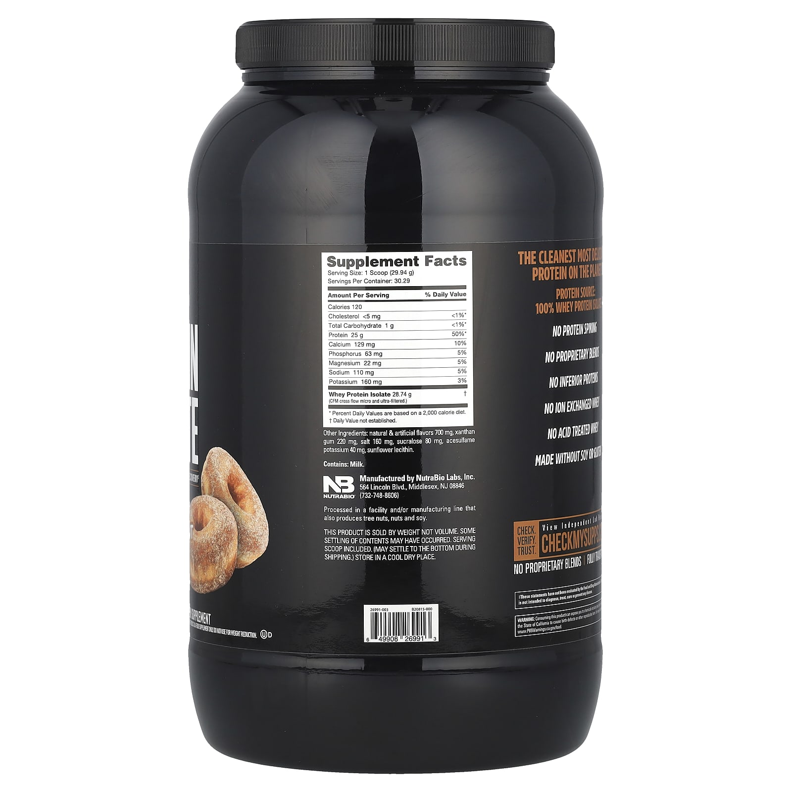 NutraBio Isolado de Proteína Whey Rosquinha de Açúcar e Canela 907 g (2 lb) – Nutrabio Labs Nutrição Esportiva Proteína Proteína Whey Isolado protéico de soro de leite.