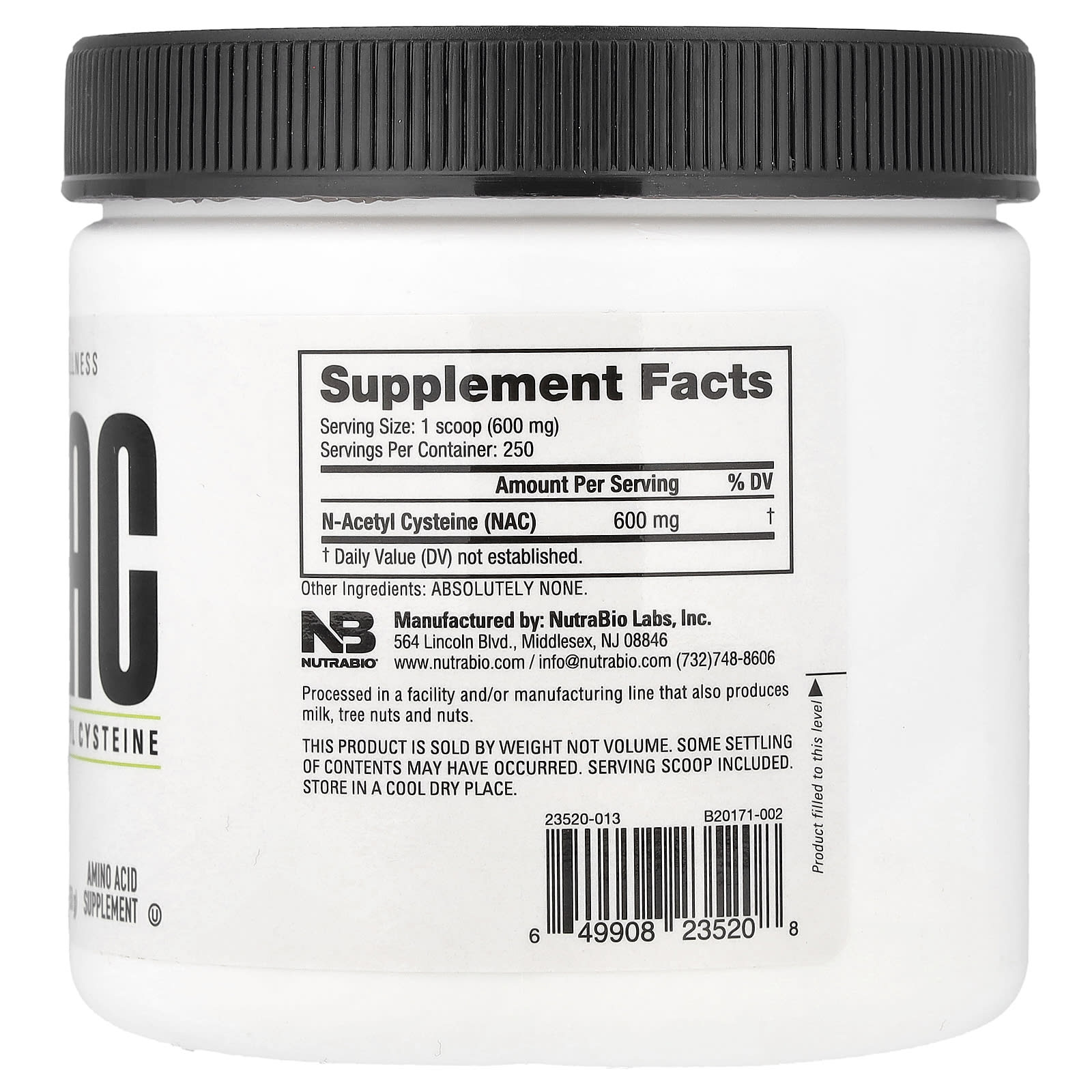 NutraBio, NAC, 150 g (5,3 oz) – Nutrabio Labs Suplementos Antioxidantes N-Acetil Cisteína (NAC).