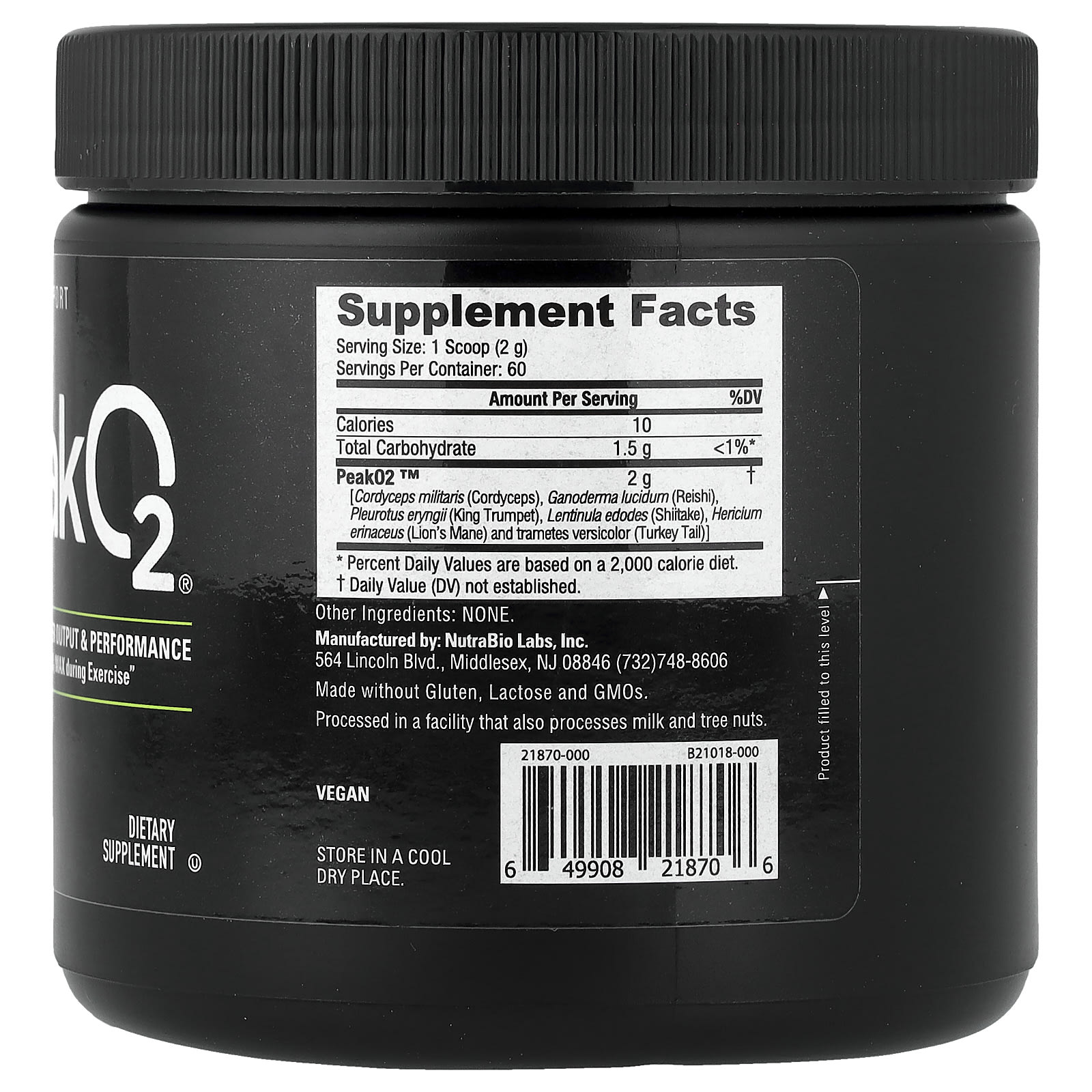 NutraBio Sport Peak O2® Sem Sabor 120 g (42 oz) – Nutrabio Labs Suplementos Cogumelos Misturas de Cogumelos.