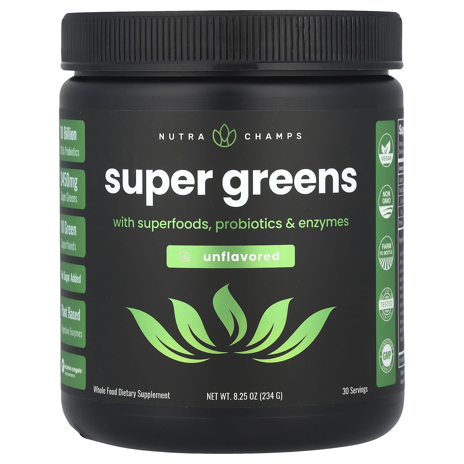 NutraChamps Superverdes com Superalimentos Probióticos e Enzimas Sem Sabor 234 g (825 oz) – NutraChamps Suplementos Superalimentos Misturas de Verduras e Superalimentos.